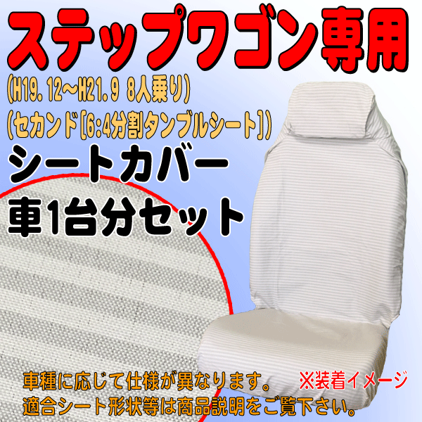 ホンダ ステップワゴン(RG1・RG2・RG3・RG4)専用シートカバー『ミニボーダー』(ベージュ)1台分セット[H19.2〜H21.10] W8-28N